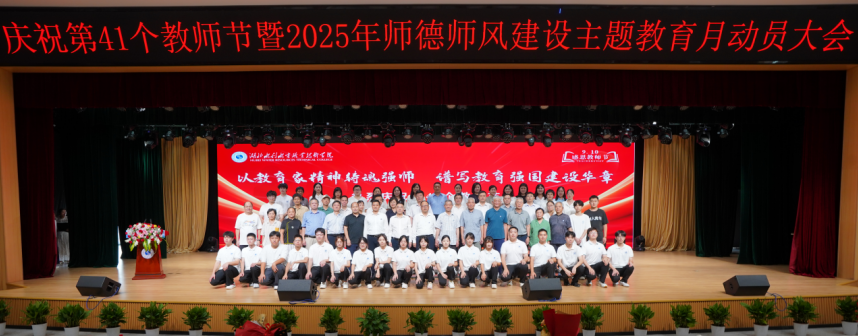 秋兰飘香,杏坛溢彩。9月10日下午,学院在汤逊湖校区大学生活动中心举行庆祝第41个教师节暨2025年师德师风建设主题教育月动员大会。省农村饮水安全保障中心主任熊渤,省水利厅人事处三级调研员马根录,学院党委书记姚祖军出席大会。会议由学院党委副书记、院长张政主持。