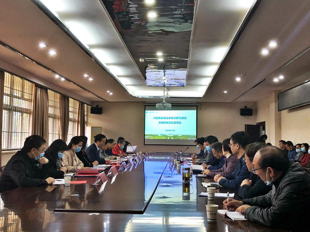 (教务处)11月20日上午,我院内部质量保证体系诊断与改进省级复核意见反馈会在汤逊湖校区召开。省教育厅专家组全体成员出席会议,学院领导班子成员、各系部负责人、教学主任、学管主任、专业及课程负责人参加了会议。省教育厅职成处副处长余弢莅临现场并作重要讲话。