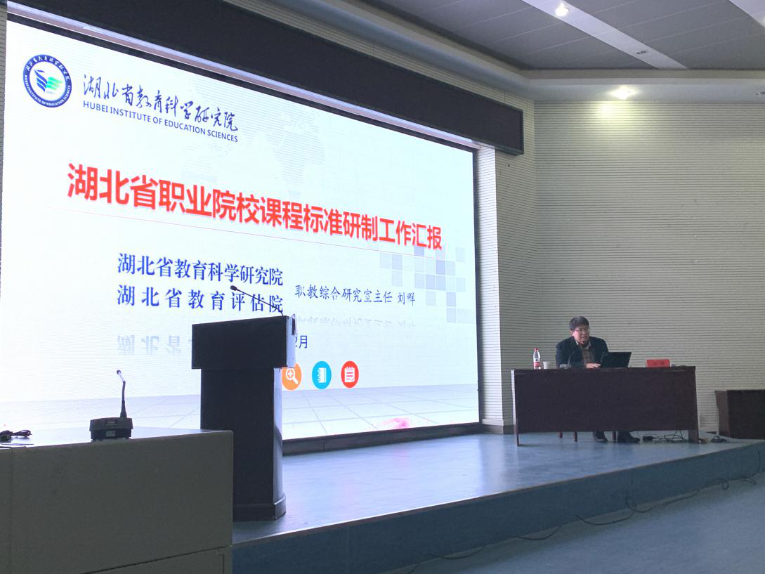 随后,湖北省教育科学研究院职业教育与终身教育研究所综合研究室刘群主任进行了“湖北职业院校课程标准研制工作汇报”。此次电子商务专业省级课程标准研制负责人、我院教务处处长梅爱冰作了“严谨求实,守正创新——课程标准体例结构与实施建议编制说明”。