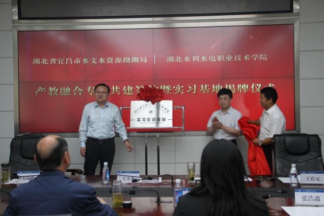 (刘飞)5月17日,院党委副书记、院长王玉才,党委委员、副院长庹祖明,党委委员、电力电子工程系主任丁官元,相关部门负责人及水利工程系24名师生代表在湖北省宜昌市水文水资源勘测局签署产教融合专业共建协议,并举行了实习基地揭牌仪式。