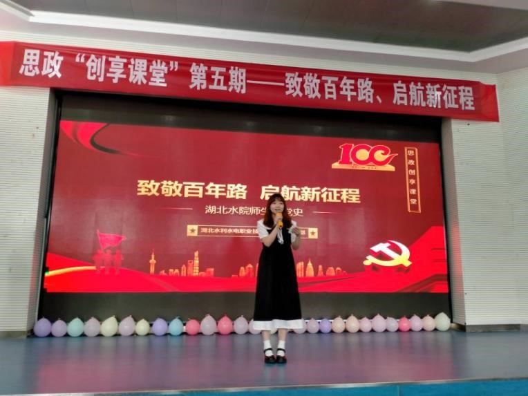 (周园)为隆重庆祝中国共产党百年华诞,表达广大师生对我党的无比崇敬之情,经过一个多月的精心准备,5月20日下午,学院思政课部在南湖校区报告厅举行了以“致敬百年路 启航新征程——湖北水院师生讲党史”为主题的思政课“创享课堂”教学活动。