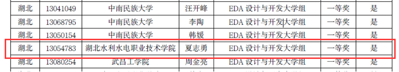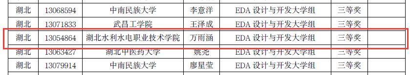 刘越)近日,第十三届“蓝桥杯”全国软件和信息专业人才大赛省赛(电子类)湖北赛区(第二场)成绩公布,我院参赛学子取得了1项一等奖、2项三等奖的好成绩。电力电子工程系学子夏志勇喜获EDA设计与开发大学组一等奖并直接进入全国总决赛,成为该赛项中为数不多挺进决赛的高职学生;万雨涵、刘铭志喜获赛事三等奖。