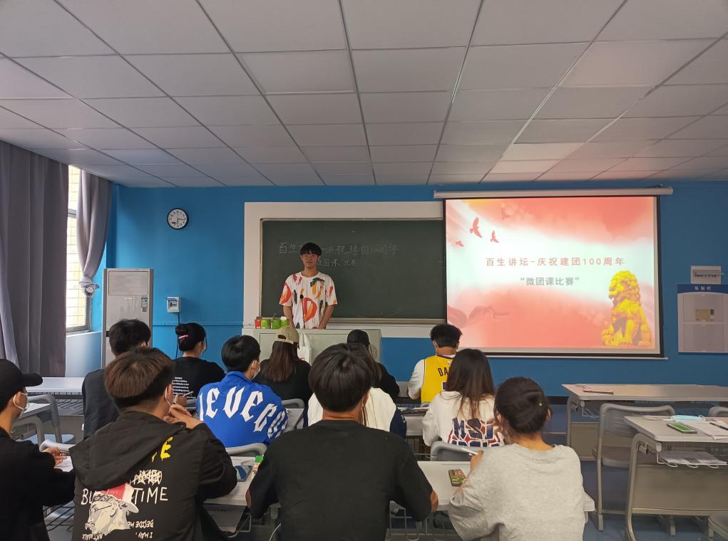 (商贸管理系)5月14日,商贸管理系在南湖校区教学楼S103成功开展“庆团成立100周年”微团课比赛活动。