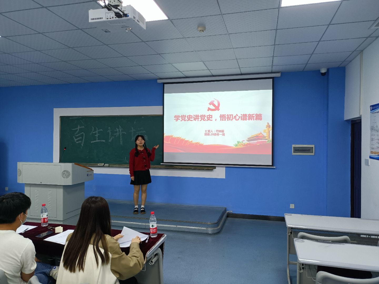 来自建筑工程系2020级和2021级的10位学生主讲人围绕习近平新时代中国特色社会主义思想、巩固拓展党史学习教育成果,结合自身谈感受,畅谈对党史的感悟。最终20造价2班成佳凝同学以《半条被子里的初心故事》夺得第一名,20造价1班符娇丽同学、20工管班王玉红同学分获二、三名。