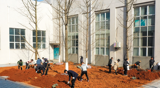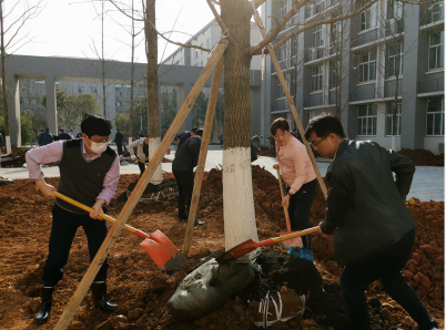 当天上午9点,参加植树的干部职工来到学院汤逊湖校区植树点,立即以饱满的热情投入到植树行动中,挥锹铲土、培土施肥、提水浇灌,全体人员齐心协力、分工明确,在一片欢声笑语中种下了一棵棵银杏树、樱花树。