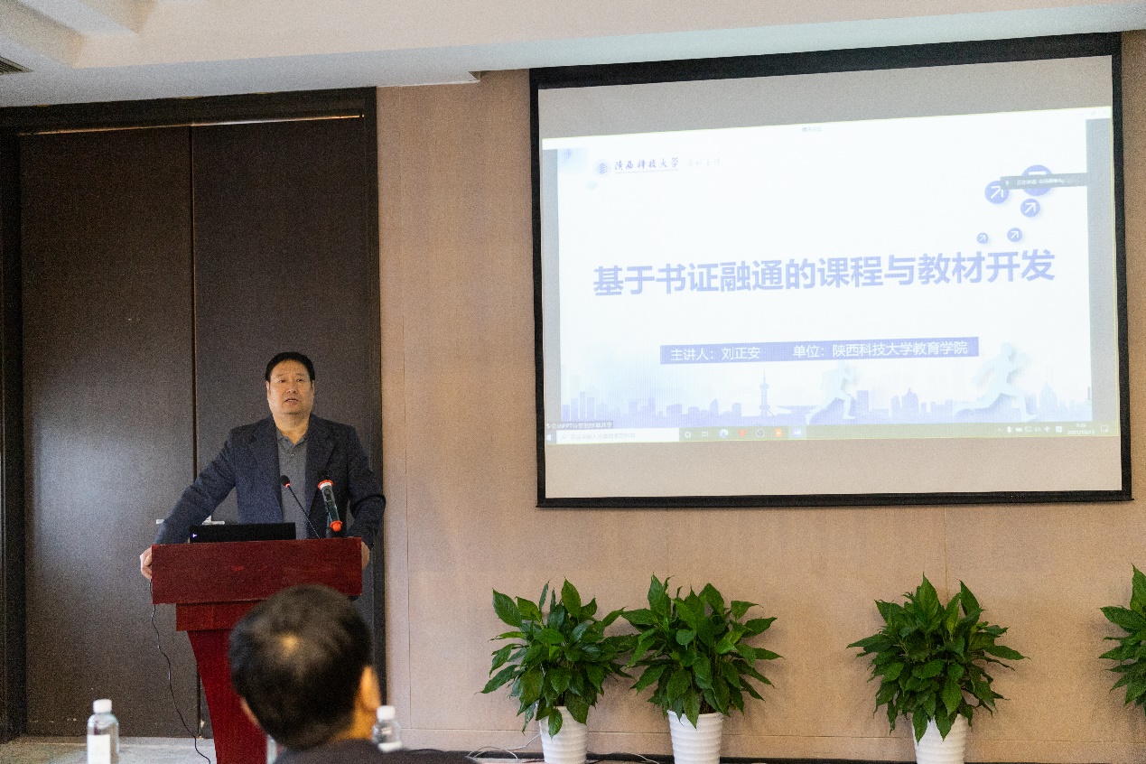 陕西科技大学教育学院院长刘正安做了《基于书证融通的课程开发路径》的专题报告,从实施“1+X”证书制度的要求视角介绍了专业标准和职业技能标准进行课程与教材的开发依据,重点介绍了模块化课程结构的重构、模块化课程内容的设计及实施活页式、手册式教材开发等提出基本的方法和路径。