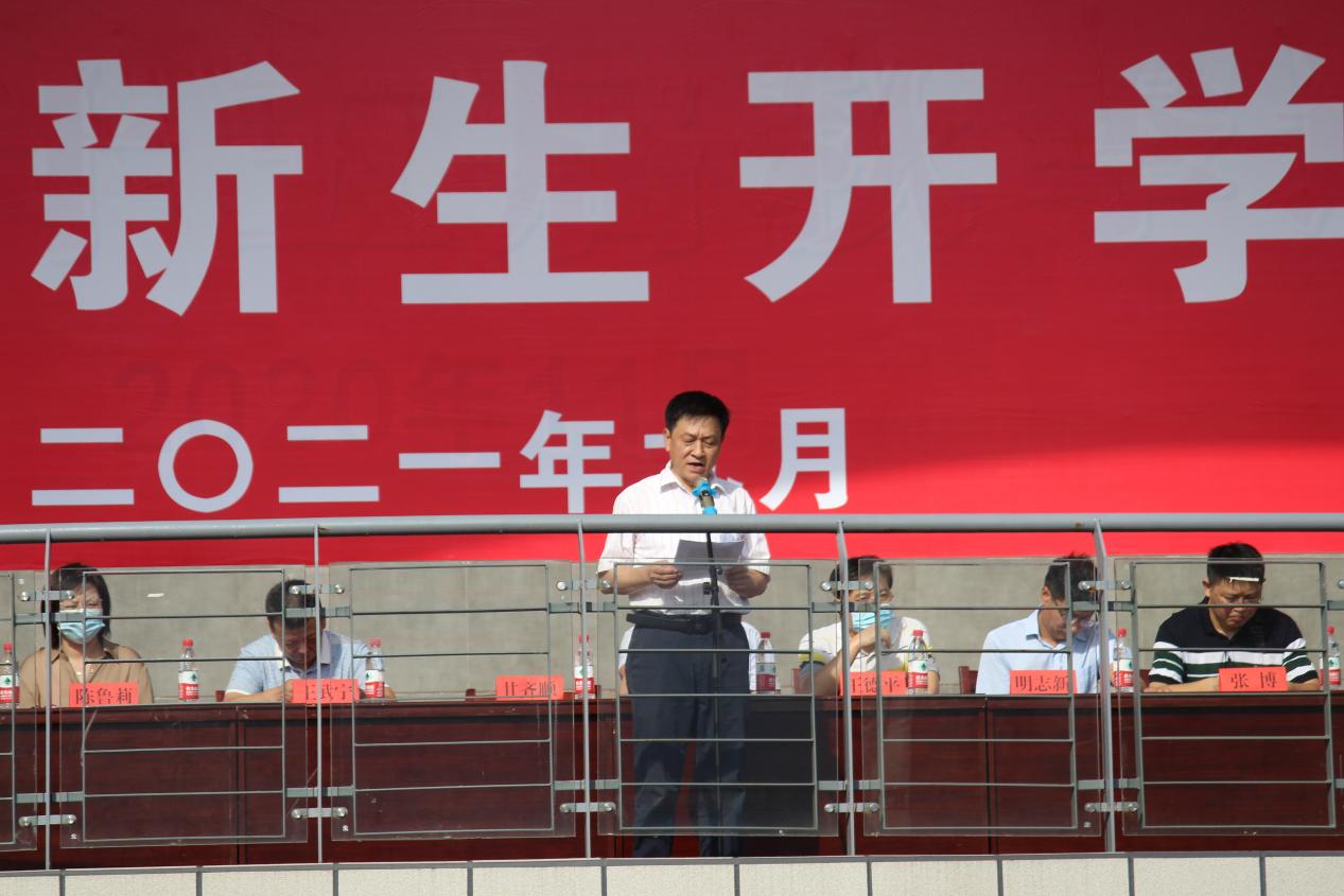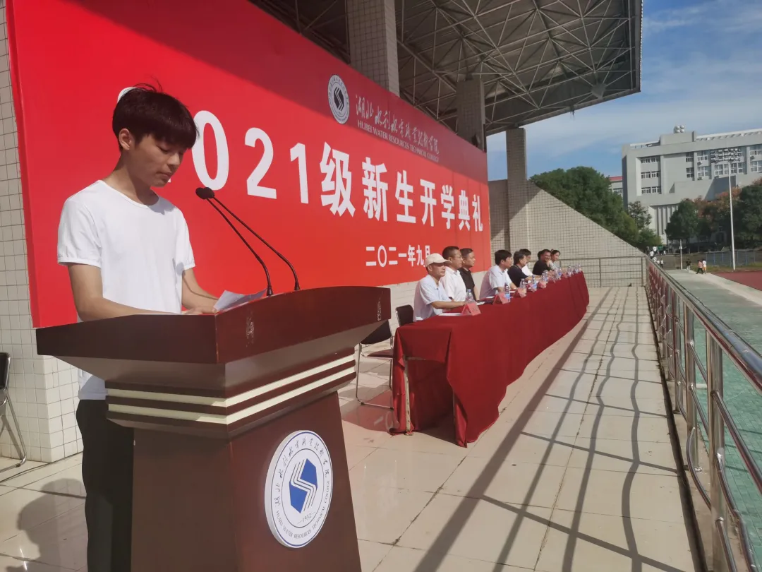 建筑工程系学生张文超机电工程系学生王金梦作为新生代表发言,他们号召同学们立鸿鹄志,做时代的奋斗者;读万卷书,做知识的沉淀者;行万里路,做真理的实践者。