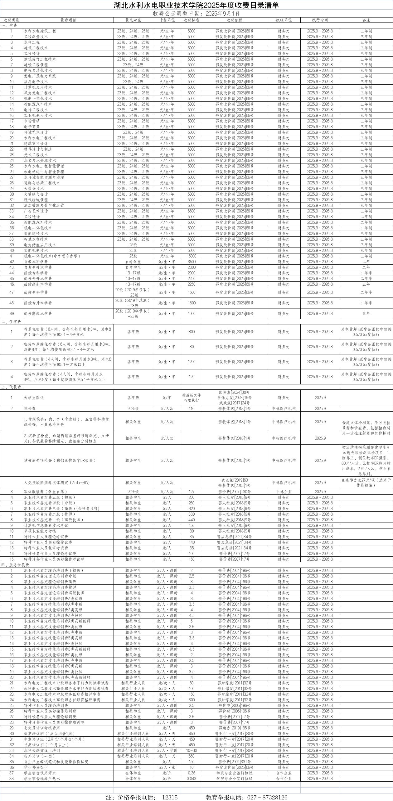 湖北水利水电职业技术学院2025年度收费目录清单.xlsx
